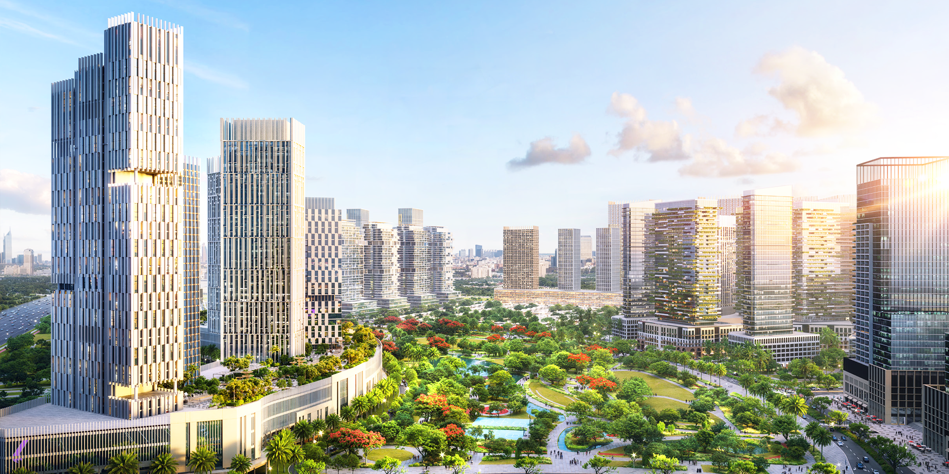 City of Arabia is a mixed-use community in Dubailand designed as a self-contained urban hub with residential, commercial, retail and entertainment zones. Located along Sheikh Mohammed Bin Zayed Road (E311) the development spans 20 million sq. ft. and is the gateway to Dubailand. The project is anchored by key attractions like Mall of Arabia, IMG Worlds of Adventure and Wadi Walk making it a lifestyle destination with residential and leisure appeal.