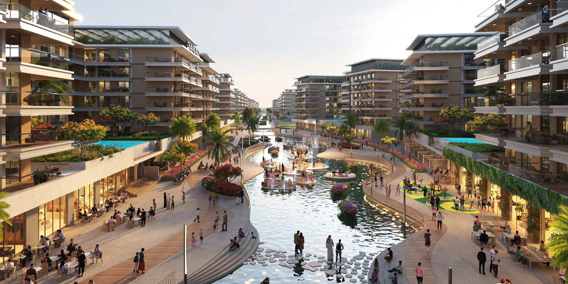 Damac Riverside y las vistas de Damac Riverside son algunos de los principales desarrollos en la comunidad de Damac Riverside, conocida por sus estaciones de calistenia, clases de cocina, anfiteatro, restaurante en la isla, lago de aceites esenciales, ópera flotante y cine flotante.
