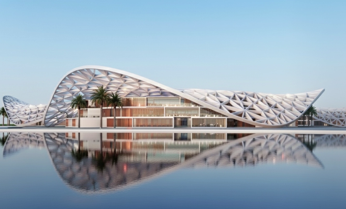 Gran vestíbulo con diseño contemporáneo esculpido