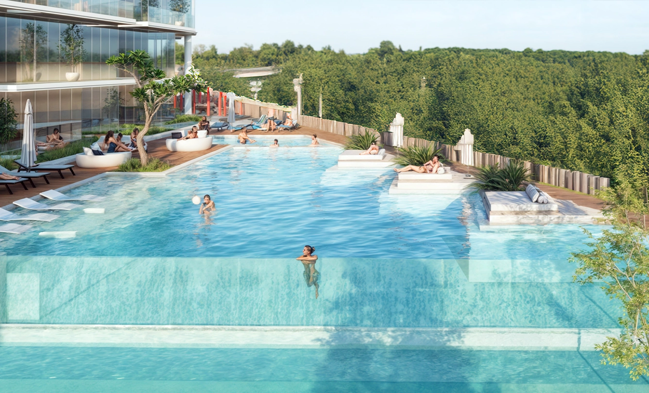 Piscine à débordement sur le toit