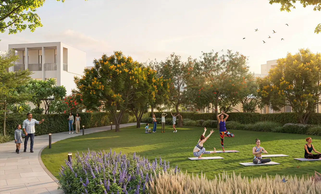 Villa sizes start from 4,905 sq.ft onwards, with G+1 and G+2 configurations, private courtyards, large terraces, and optional private pools. The planning philosophy prioritises privacy, walkability, and daily wellness rather than density. Approximately 50% of the master plan is dedicated to open and green spaces, anchored by an 800,000 sq.ft central park.The Grove follows a 60/40 payment plan and is positioned for long-term end-use buyers seeking space, privacy, and nature-integrated living within Dubai’s next-generation residential corridor.